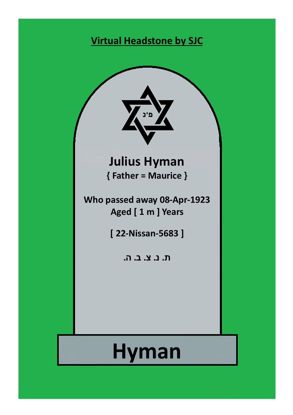 | Hebrew Name - ( { Father = Maurice } ) { Father = Maurice Hyman } |