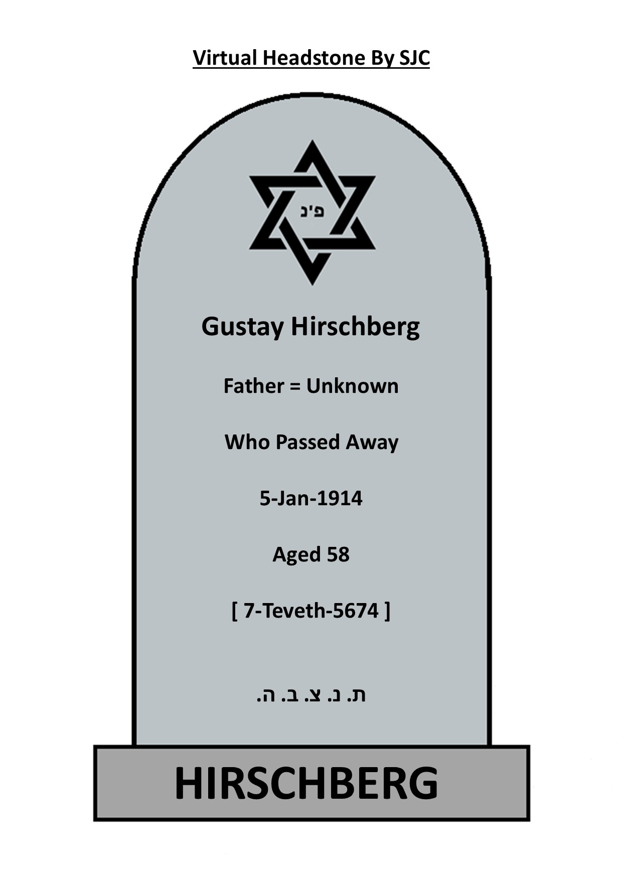 | Hebrew Name - ( Father = Unknown ) Father = Unknown |