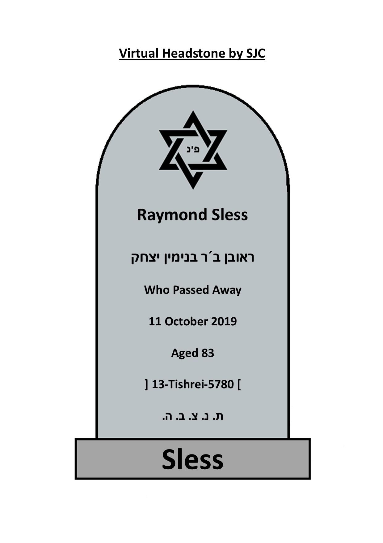 Hebrew Name - ( ראובן ב´ר בנימין יצחק )