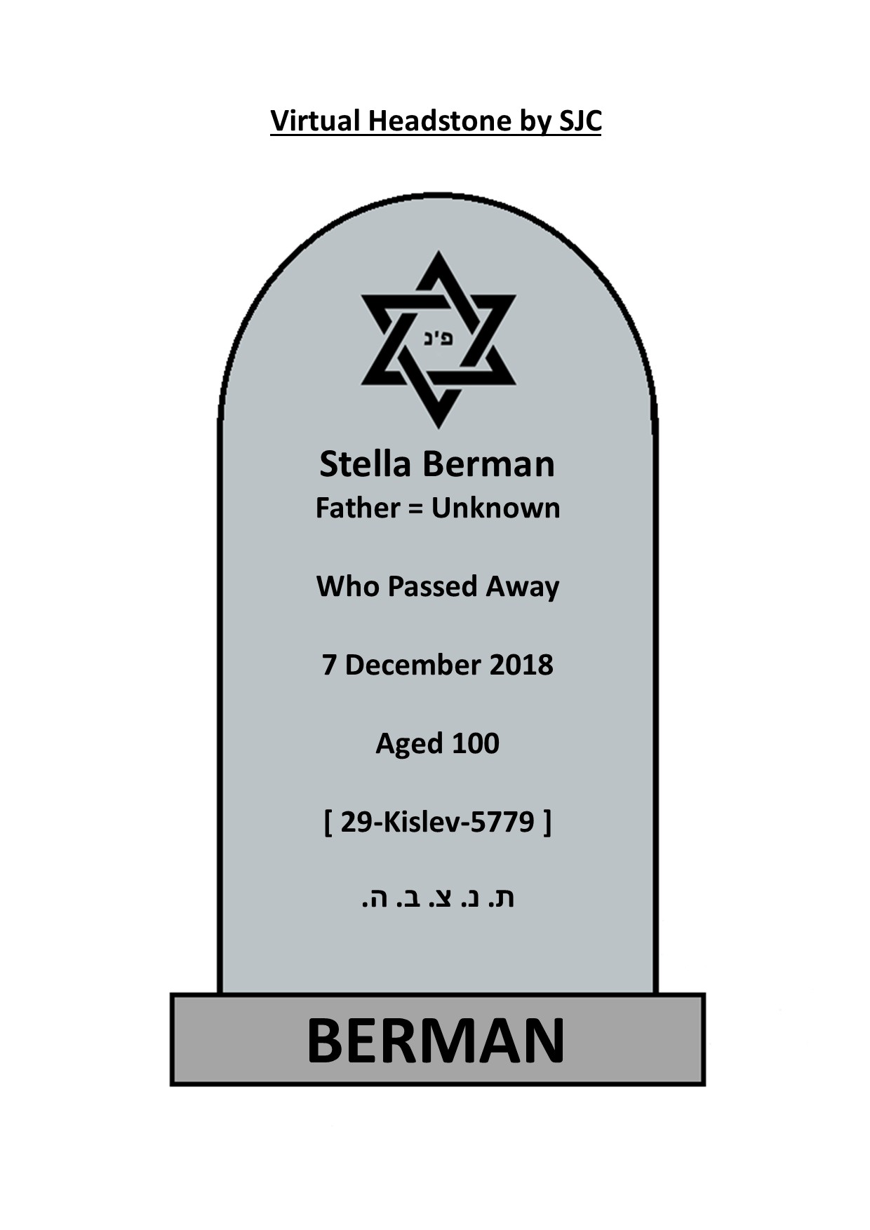 Full Name : Stella ( Stellina ) [ Stellina Pauline ] Berman { Nee Harari } [ Nee Donnelly ] |