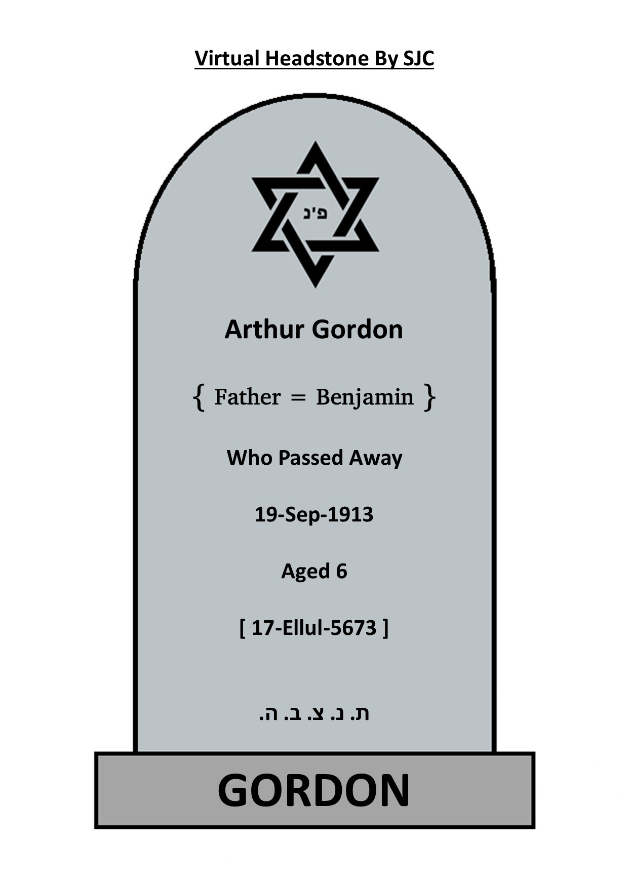 | Hebrew Name - ( { Father = Benjamin } ) { Father = Benjamin Gordon } |